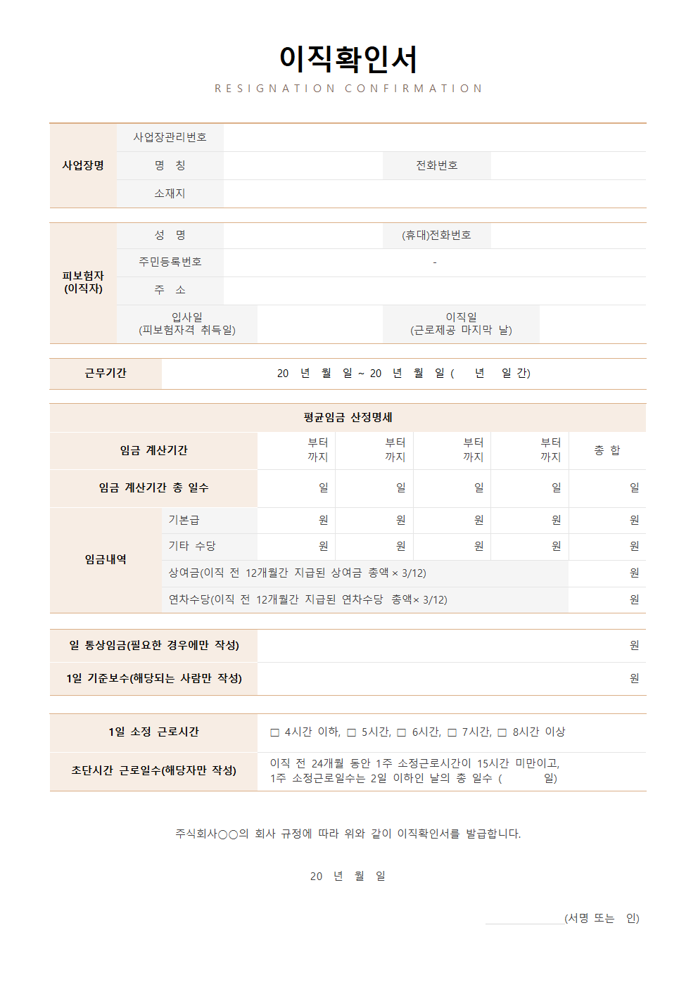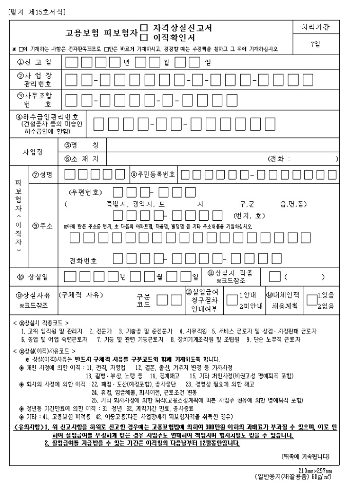 이직확인서 작성 시 유의사항